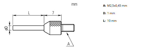 Merací dotyk valcový, L=10mm, D=1mm, tvrdokov MITUTOYO (21AAA332)