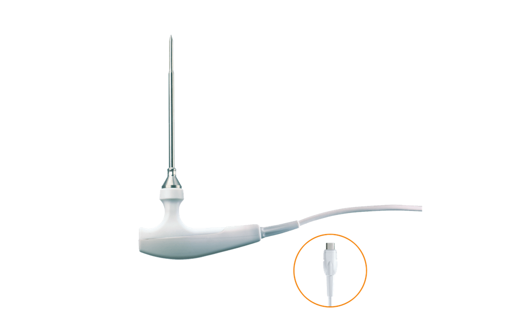 Robustní sonda pro průchod potravinami (NTC) s trvale připojeným kabelem 1,3 m a TUC konektorem.